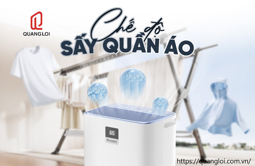 Khi chế độ sấy quần áo được kích hoạt, máy hút ẩm Kosmen KM-30N nhanh chóng làm giảm độ ẩm trong không gian xung quanh, tạo điều kiện cho quần áo khô nhanh hơn. Thay vì sử dụng nhiệt độ cao như máy sấy truyền thống, máy hút ẩm Kosmen kết hợp lọc không khí KM-30N hoạt động bằng cách loại bỏ hơi ẩm từ không khí, làm khô quần áo một cách tự nhiên và hiệu quả.